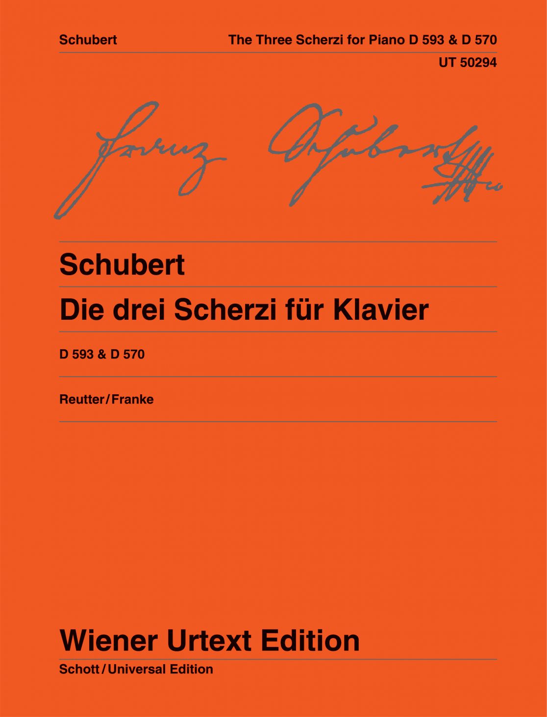 Schubert. Three Scherzi for Piano. Wiener Urtext UT50294. Edited by Jochen Reutter. Fingerings and comments on interpretation and performance practice by Nils Franke.